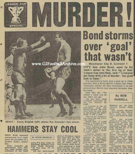 On this day (14th January) in 1981 Kevin Reeves had a goal disallowed for ‘illegal jumping’, according to referee Alf Grey, in the first leg of the League Cup semi-final against Liverpool at Maine Road. Afterwards manager John Bond claimed the referee would “never make a worse decision for as long as he lives.” When I … Continue reading 40 Years Ago Today (Yes, 40!) – ‘Illegal Jumping’, Alf Grey and Manchester City (Sorry!)
