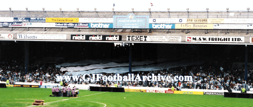 - Segregation was unnecessary for most of the stand’s existence, but by the end of the 1960s a rope would often be used to separate City and United fans on derby day. This was replaced by permanent barriers in the mid-70s which were increased over the years to keep home and away fans apart. Away fans were positioned at the Platt Lane end of the stand by this time.