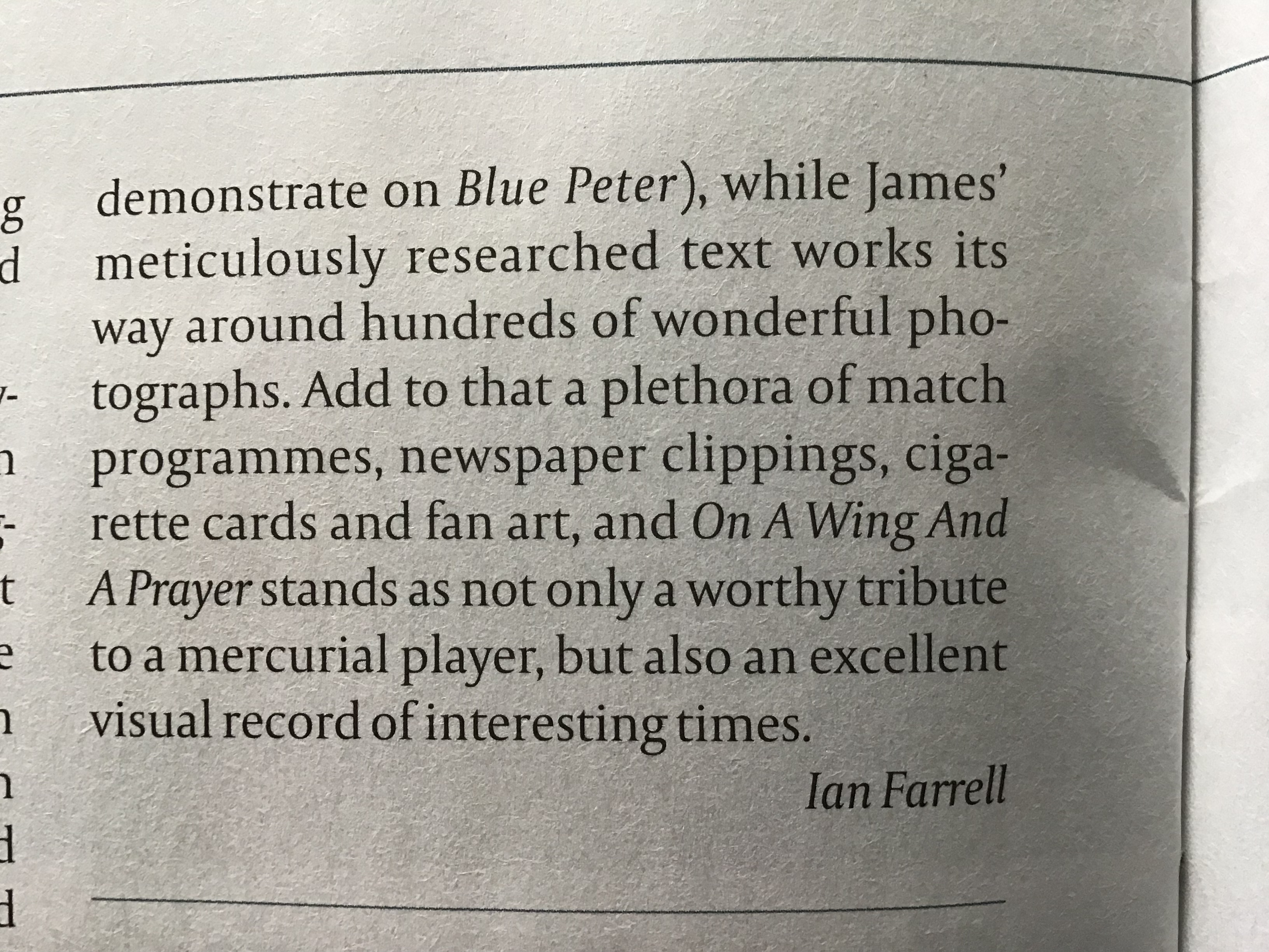 Absolutely delighted with the review of the Peter Barnes Authorised Biography in the November issue of When Saturday Comes. the magazine is out this week and i love the review by Ian Farrell. Thanks to Ian, Andy and all at WSC. it really is appreciated.