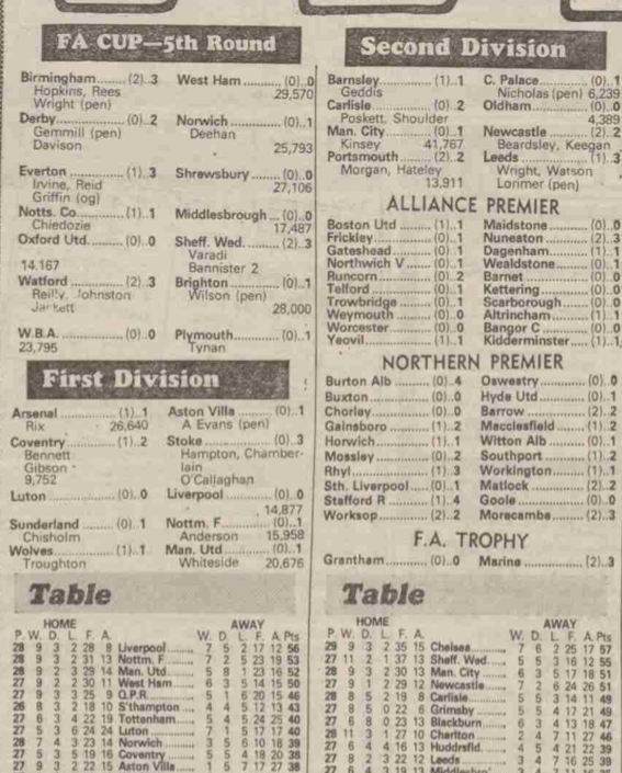 On this day (18th February) in 1984 Manchester City attracted a crowd of 41,767 in the Second Division for the visit of Newcastle United. The attendance was the biggest of the day (see image above to compare with Arsenal for example). It was also City’s and the division’s second biggest crowd of the season (the division’s … Continue reading Manchester City v Newcastle United 1984
