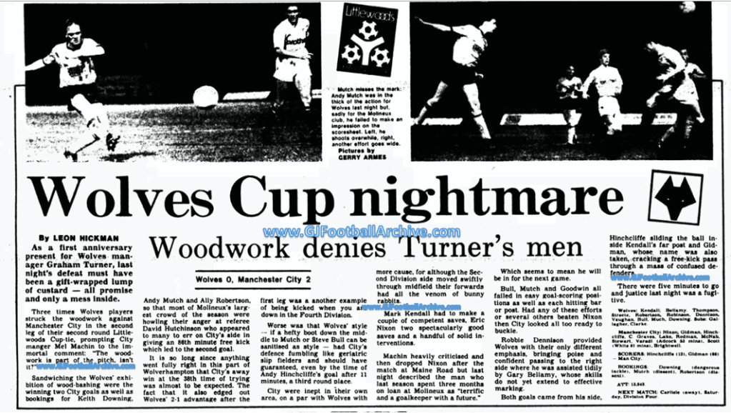 Have a read of this report. There are some great lines in here comparing City to bunny rabbits and other stuff. I particularly like Mel Machin’s comment about the woodwork.