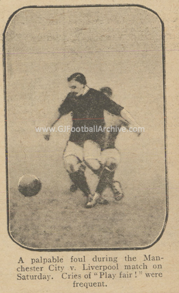 This game was at Hyde Road and on this image is a ‘palpable foul’ from a Manchester City player against Liverpool but the caption says ‘Cries of “Play fair” were frequent.’ As this was a home game for City it feels like the City fans would have been making those noises as few Liverpool fans … Continue reading ‘Play Fair’ Liverpool!