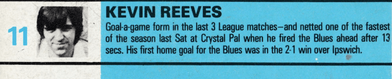 Continuing the series of articles covering the 1980s. Today’s is an on this day (29 November) from 1980 when Kevin Reeves scored a City goal after only 13 seconds. The game was away at Crystal Palace and City were wearing their away kit of red and black stripes.