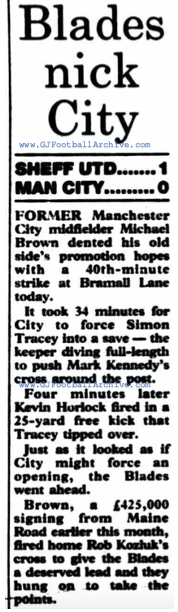 It was Michael Brown who in January 2000 signed for Sheffield United and then, sure enough, he has to face City within a short period following his move and he nets the only goal of the match. Ah well! We can remember it now without getting too worked up but these things do have a tendency to occur more frequently than they ought to – or at least it feels that way!