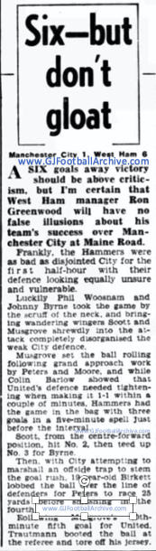 The view from West Ham was that their team was not particularly worth the 6-1 victory. This London report makes interesting reading: