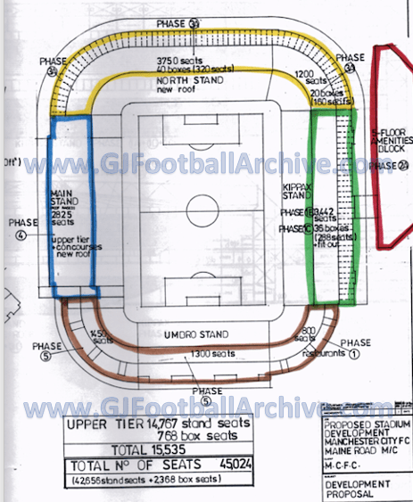 The new Kippax was the first phase of the development but Manchester’s bids for the Olympics changed thinking. Couple that with relegation in 1996 and the wholesale redevelopment of Maine Road was postponed after the Kippax opened and then dropped completely.