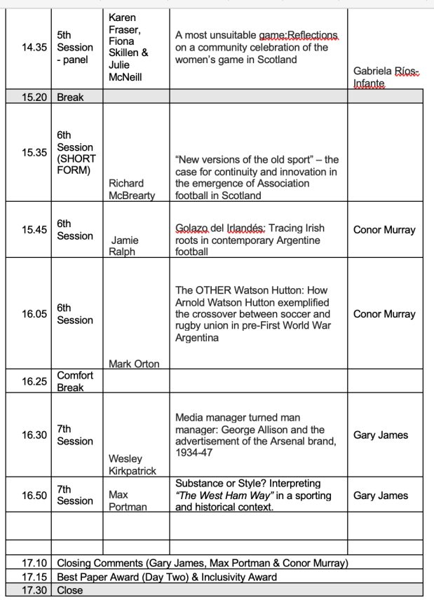 We’re now looking for venues to stage the 2026, 2027 & 2028 conferences, so if you are involved with a footballing (again, any code) venue with conference facilities and you feel you can help then please get in touch at footycon@outlook.com.