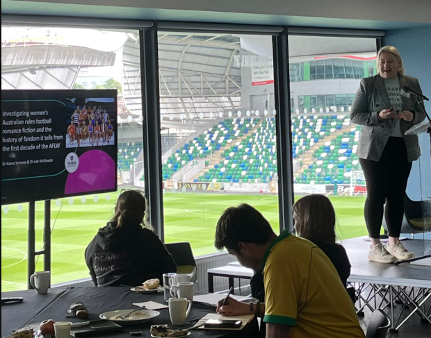 Karen Fraser, Fiona Skillen & Julie McNeill for their panel on ‘A most unsuitable game: Reflections on a community celebration of the women’s game in Scotland.’ Back in 2023 Karen, Fiona and Julie presented about this project at our Hampden Park conference and it was gratifying to see them return with reflections on what was clearly a well-managed, researched and impact-making project.