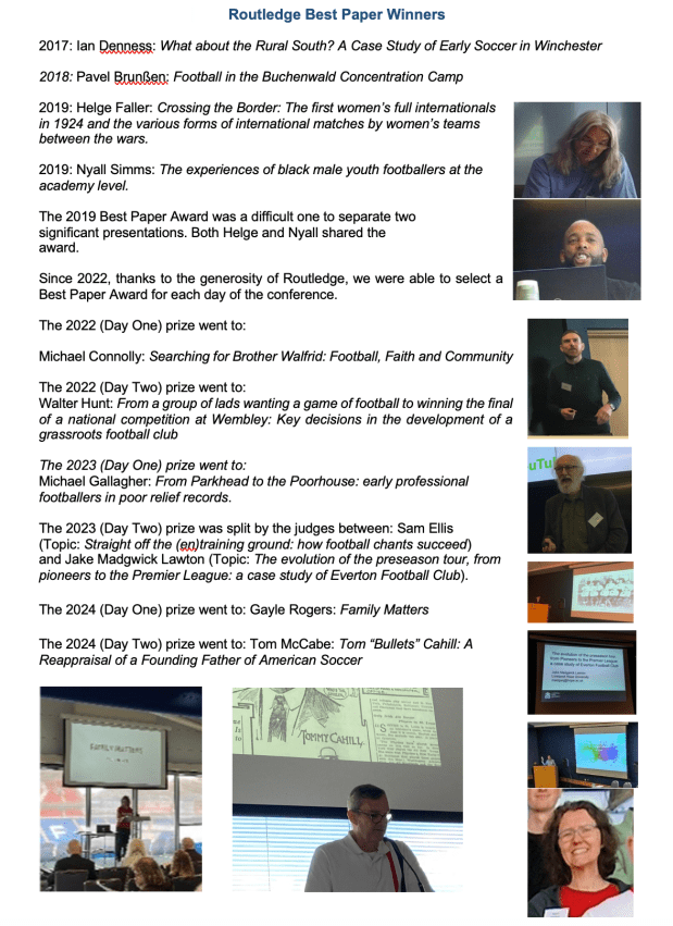 The International Football History Conference 2025 was held at Windsor Park Belfast last week and, as usual, we had a panel of judges picking out their best paper awards and an inclusivity award. Competition was fierce and the winners, once again, thoroughly deserved their recognition. The award winners were:
