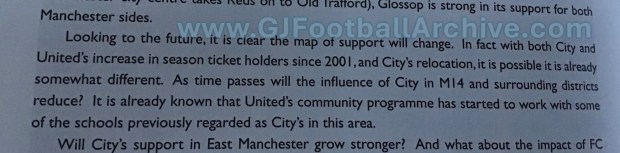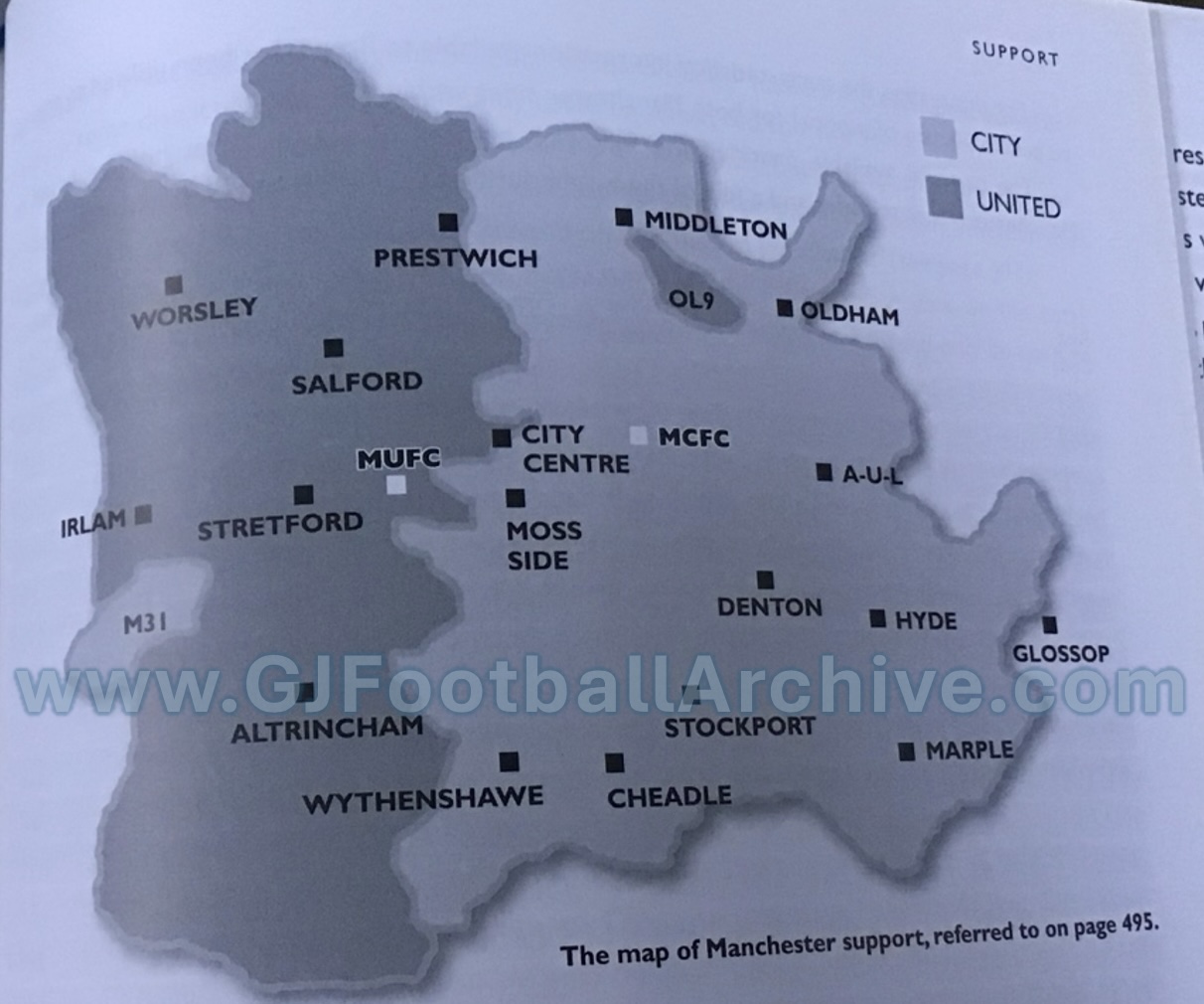 Here’s a map I published in my book Manchester A Football History. It shows the spread of support for both City and United across Manchester as recorded in an academic study back in 2002 (using data from 2001). Basically this was based on season ticket holders in each postcode area of Manchester and shows whether a postcode area was Red or Blue at that time. You can see that back then City had more season ticket holders in almost every district of the city centre and east Manchester while United tended to have more in western districts. However, this was based on the number of season ticket holders in 2001. Since then of course the numbers attending games at both clubs have increased significantly.