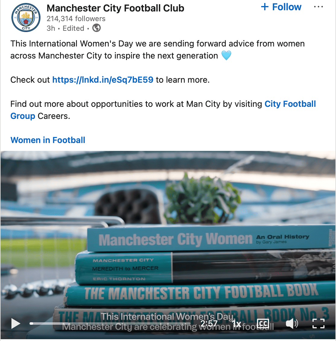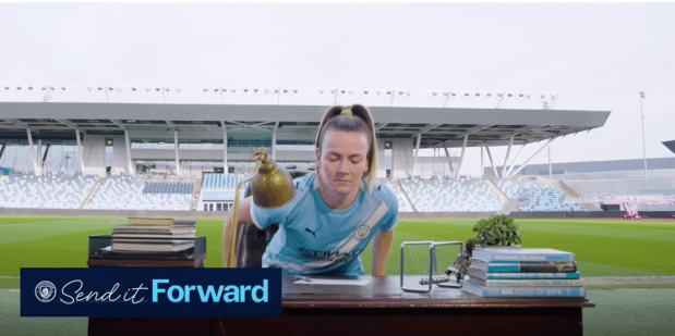 It’s great to see the Manchester City Send It Forward campaign here (link below). I’m also delighted that my City Women history book forms part of the desk set up (there’s another one of my books in there too, but seeing the City Women book there is so pleasing). More on Send It Forward here: https://www.mancity.com/news/womens/send-it-forward-international-womens-day-man-city-63908379?utm_source=linkedin&utm_medium=organic_social