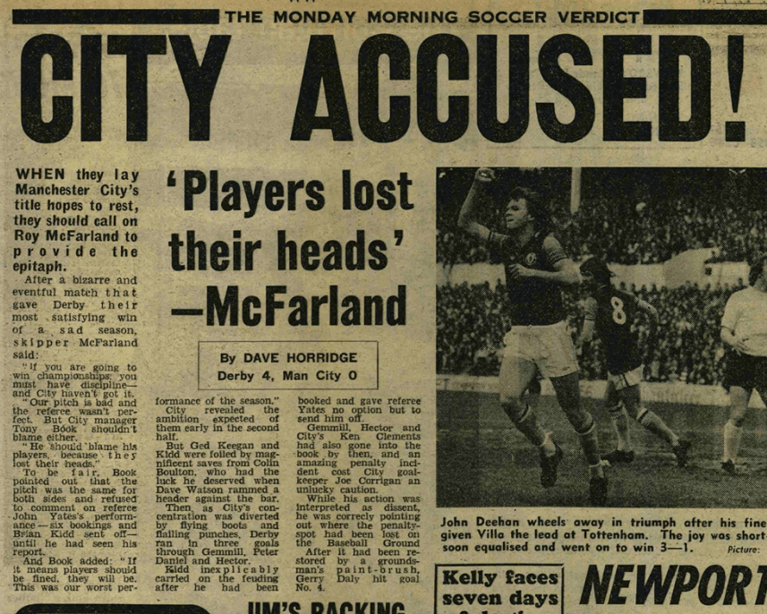 Unfortunately, this had been a bad tempered game against a team struggling. It ended in 4-0 City defeat at Derby and it was a huge set back, especially as Derby scored all four in the last 25 minutes. In addition Brian Kidd was sent off.