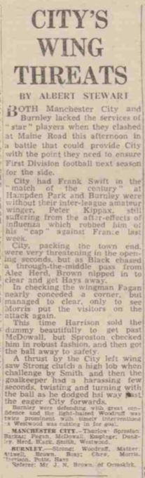 The City-Burnley crowd was the Second Division’s record at the time and it was higher than every First Division crowd since the 1937-38 season (The Second Division record is now held by Tottenham v Southampton which had 70,302 in 1949-50).