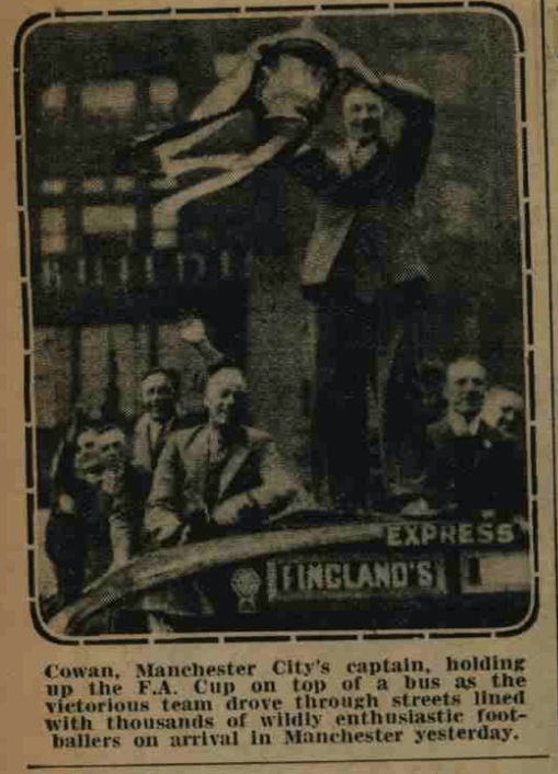 Various speeches were made into a microphone set up on the Town Hall steps (the BBC were broadcasting this live on radio), and the players and officials were given a civic reception. Mancunians enjoyed the success and wanted more.