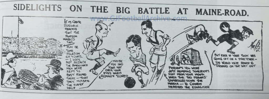 It’s day 35 of my posts counting down to the centenary of Maine Road’s opening game and today’s images are a reminder of the first Manchester derby played at Maine Road.