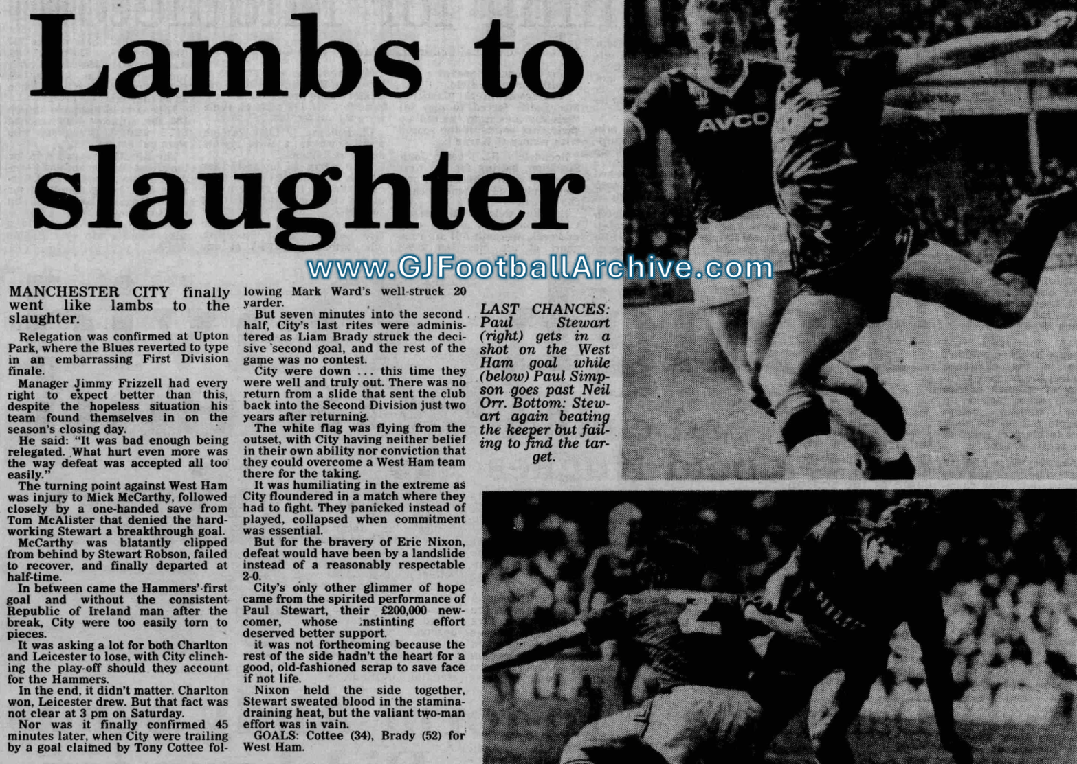 On this day (9 May) in 1987 Manchester City were relegated after a 2-0 defeat at West Ham (see match report). At the end of the game City supporters and West Ham fans climbed over the fences and onto the pitch. Some thought that the two sets of supporters were about to confront each other, but the fans knew differently. The Hammers began chanting “You’ll be back” and both groups swapped scarves and souvenirs on the pitch. It was the kind of moment that should have been widely reported in the media but at the time focus tended to be on hooliganism and confrontation rather than the positives of football support. City had been relegated, but their supporters did not seek revenge. The West Ham fans could have ridiculed, but they didn’t. If only those condemning football fans at the time could have seen the two sets of loyal supporters genuinely appreciating and understanding each other.