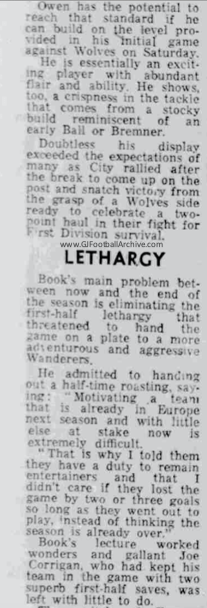 Last week I posted a piece on the 1978-79 season when Malcolm Allison returned midway though, describing himself as City’s Coaching Overlord. It was never an official title but the press loved it. That led to several people commenting on facebook, twitter and in private messages to me about the loss they felt when Malcolm started to move on some of the players fans loved. This included Peter Barnes (who I’ve written an authorised biography of – see elsewhere on my site for details of how tobuy that) and Gary Owen. Both players were loved by fans (and still are). So today’s 1970s flashback follows on from all of that.