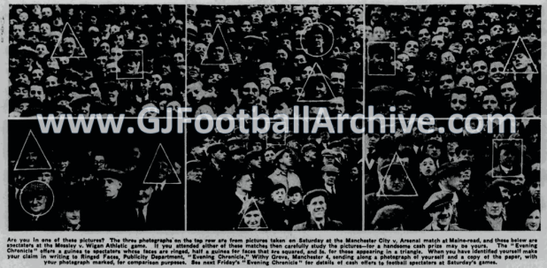Fans at MCFC v Arsenal and Mossley v Wigan, February 1935