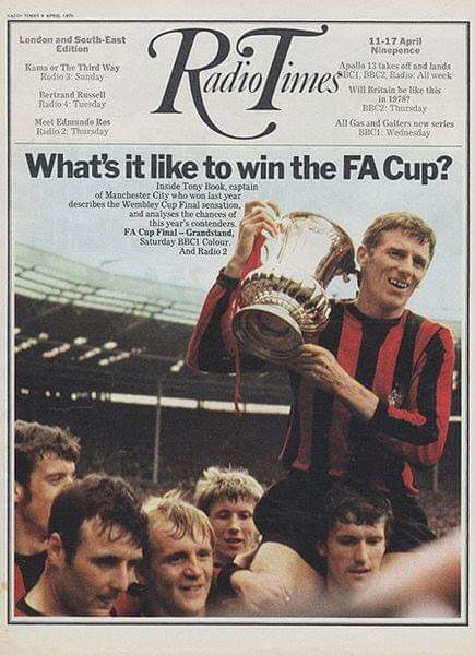 Here’s a nice cover from the Radio Times featuring Manchester City’s 1969 FA Cup winners. They defeated Leicester 1-0 thanks to a goal from prolific City scorer Neil Young.